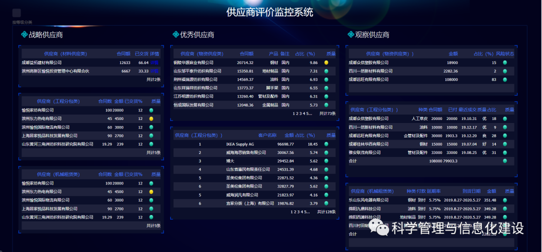 ##01. 前言 隨著建筑工程行業(yè)市場競爭的加劇,行業(yè)的生存環(huán)境越來越惡劣,人為管控已經(jīng)無法滿足各公司的需求,管理水平落后已是制約許多施工企業(yè)尋求進一步發(fā)展的障礙。因此,全面整合內(nèi)外資源、優(yōu)化采購流程、強化管理效率、嵌入風(fēng)險控制和評估體系,引入大數(shù)據(jù)、人工智能等先進技術(shù),提升公司整體業(yè)務(wù)能力和對外響應(yīng)能力已經(jīng)是很多施工企業(yè)密切關(guān)心的問題。 ##02. 需求分析 - 建筑工程企業(yè)從項目前期投標開始、到項目立項、施工過程、竣工結(jié)束的整個過程中,企業(yè)沒有清晰規(guī)范化的管控; - 由于企業(yè)的各個項目地點分散,企業(yè)總部對于各個項目又缺乏有效的管控手段,因此就出現(xiàn)了在項目中施工計劃難以落實到位,工程項目的進度無法保證,項目運作放任自流的情況; - 在成本管理方面缺乏標準化的制度,成本的發(fā)生經(jīng)常與計劃相脫節(jié),不能實時統(tǒng)計和呈現(xiàn),當發(fā)現(xiàn)成本超支時也已經(jīng)無法再挽回; - 企業(yè)無法對多個項目進行具體有效的管控,企業(yè)領(lǐng)導(dǎo)者無法有效的掌握企業(yè)整體運營,因此也難以從整體上對公司資源進行整體化把控; - 在物資材料管理方面,現(xiàn)階段大部分施工單位工程物資管理混亂,物資計劃不合理、計劃隨意或是根本沒有物資計劃等情況不同程度存在。導(dǎo)致計劃制定不合理,出現(xiàn)物料短 - 缺或物料過剩囤積的情況,導(dǎo)致工程項目停工,造成不必要的經(jīng)濟損失,拉高了工程施工成本; - 工程涉及多方合作,關(guān)系復(fù)雜,造成往來結(jié)算不清、責(zé)任劃分不清。 ##03. 解決方案 西華升騰科技有限公司深刻理解建筑工程管理理念,不斷總結(jié)成功實施工程項目信息化先進經(jīng)驗,將工業(yè)企業(yè)精細化管理理念、方法融入工程項目管理,規(guī)劃出的適合工程項目管理、施工過程精細化管控的解決方案。 ### 1、采購管理信息系統(tǒng) 建立采購中心從“決策管理層→管理控制層→業(yè)務(wù)運作層→業(yè)務(wù)支持層”縱向的透明數(shù)據(jù)信息網(wǎng)絡(luò),保證信息的真實性、及時性、準確性和完整性,為公司的經(jīng)營決策提供科學(xué)的手段與依據(jù);建立采購中心的風(fēng)險監(jiān)控平臺,加強采購領(lǐng)域異常和重大事項的監(jiān)控與反饋機制,幫助公司更有效地對下屬各項目及合作單位進行監(jiān)控,降低公司整體運營風(fēng)險;  ### 2、設(shè)備物資管理系統(tǒng) 以集團設(shè)備物資管理實際業(yè)務(wù)為重點,將固定資產(chǎn)、工程物資、機械設(shè)備等,在計劃、采購、物流運輸、出口報關(guān)、倉儲、使用和處置、出口退稅等環(huán)節(jié),進行規(guī)范化、標準化、信息化、智能化管理融為一體的新一代企業(yè)管理平臺;  ### 3、綜合項目及施工管理平臺 - 實現(xiàn)成本管控線上管理,過程管理(事前預(yù)警),過程干預(yù),事后總結(jié); - 現(xiàn)場物資/設(shè)備/勞務(wù)(分包)線上管理; - 通過成本策劃,策劃出項目物資/設(shè)備/勞務(wù)用量,通過招采/定標/合同,限定供應(yīng)商供貨量,限定項目使用量,杜絕項目現(xiàn)場管理亂象; - 工作推送(策劃完成后,生成物資招采待辦等); - 項目報銷審核完成后自動生成財務(wù)憑證; - 工作流程審批OA化;  ## 04.全新的設(shè)計理念 全新的管理思想 ####設(shè)計思想 以工程項目計劃與過程管控為重點,將項目成本管理 、招采定標、合同管理、分包管理、質(zhì)量管理、物資管理、現(xiàn)場管理、結(jié)算管理、設(shè)備機械管理、工程資料管理風(fēng)險管控等環(huán)節(jié),進行規(guī)范化、標準化、信息化、智能化管理融為一體的新一代企業(yè)管理平臺。 #### 設(shè)計原則 - 先進性,兼容性、安全性、友好性、拓展性、集成性、開放性、易維護 - 規(guī)范化、標準化、組件化、平臺化 ####建設(shè)目標 - 實現(xiàn)公司對項目的合同管理、信息管理及項目檔案資料的管理等“三管” - 實現(xiàn)公司對項目的進度控制、成本控制、質(zhì)量控制、安全控制等“四控” - 實現(xiàn)公司與項目部,各項目間的部門高效協(xié)調(diào) - 幫助集團、子公司、項目部各個管理層級,能夠全面、及時掌控集團各類項目的項目狀態(tài)、進度計劃完成情況、項目成本情況、項目物資情況、項目利潤情況 ###2、系統(tǒng)介紹 #### 項目臺賬 項目立項一般是指這個項目正式成立,得到企業(yè)各單位部門的審議批準,并列入項目實施組織或者企業(yè)計劃的過程。  ####3、項目分析  ####4、 成本配置模型  ####5、 供應(yīng)商數(shù)據(jù)分析  ####6、采購業(yè)務(wù)流程  ####7、智能化合同管理  ####8、合同編輯  #### 9、電子簽批  ####10、設(shè)備物資管理  - 在全公司范圍建立統(tǒng)一的固定資產(chǎn)、設(shè)備分類編碼,對固定資產(chǎn)、設(shè)備卡片等編碼進行規(guī)劃,在系統(tǒng)中建立固定資產(chǎn)及設(shè)備庫登記,對固定資產(chǎn)及設(shè)備進行統(tǒng)一規(guī)范的管理; - 公司對所有設(shè)備的分類、使用、分布及費用需生成各種統(tǒng)計分析報表,為企業(yè)進行設(shè)備統(tǒng)一的規(guī)劃、購置、調(diào)配提供數(shù)據(j